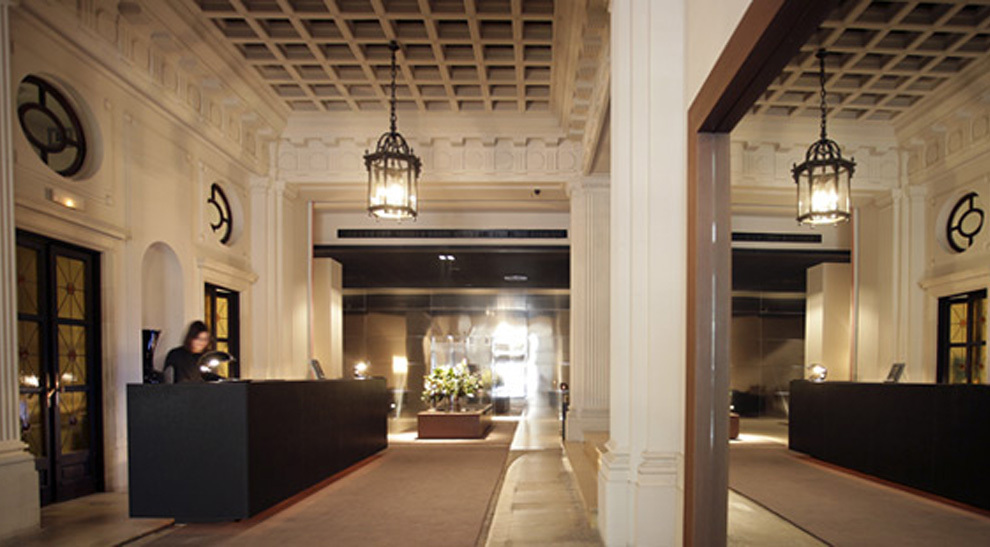 En la planta baja, se situaron los accesos principales al edificio con el vestíbulo, algunos salones y el restaurante del hotel, y con entrada directa desde la calle. En este vestíbulo, antiguo paso de carruajes, se mantuvo el carácter monumental con decoración actual. El espacio desemboca en el hall central del hotel, donde conectan todas las plantas. En la parte subterránea, se han ubicado las cocinas, vestuario y el resto de instalaciones.